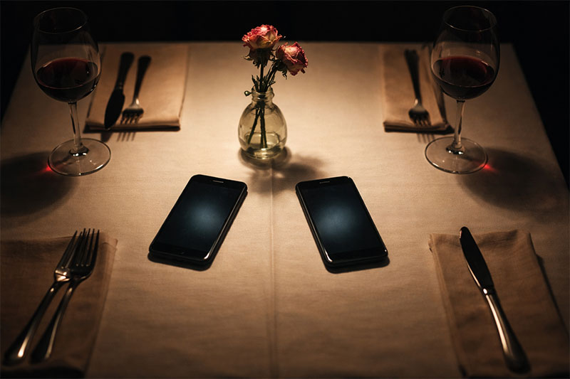 Saturday night at a restaurant just nice enough for a reservation. A couple in their late fifties, maybe early sixties, seated by the window. They have been there for twelve minutes. I know because I was seated just after them, and in that time neither has said a word that wasn’t about the bread or the water or whether the parking meter needs more time. Their phones sit on the table like life rafts. The entrees are still twenty minutes away.